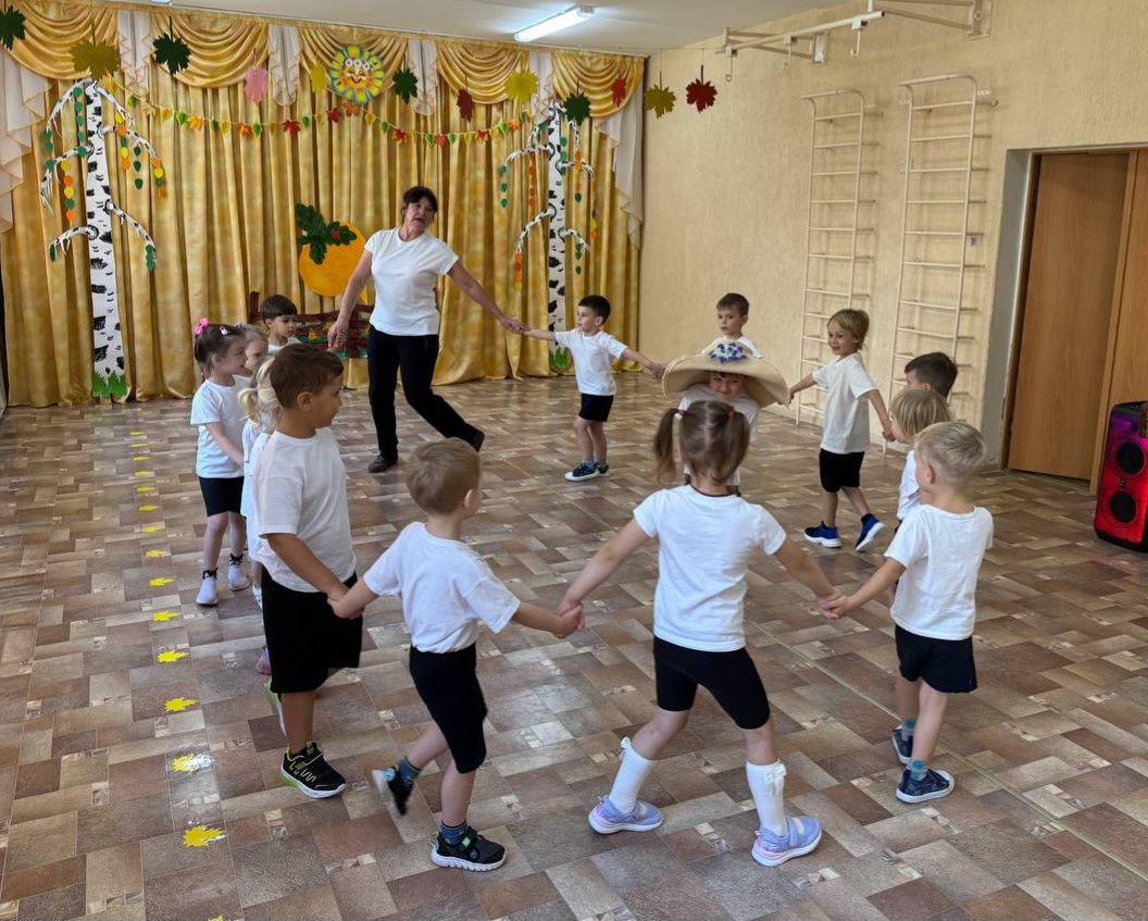 На огороде вырос богатый урожай вкусной и сочной репки. Ребята не только помогли перевезти урожай, но и поиграли с огородным пугалом в подвижную игру.