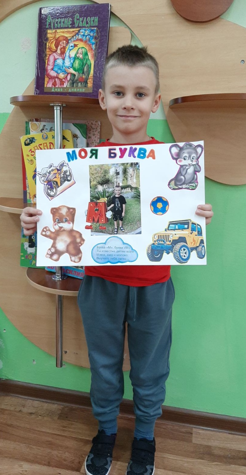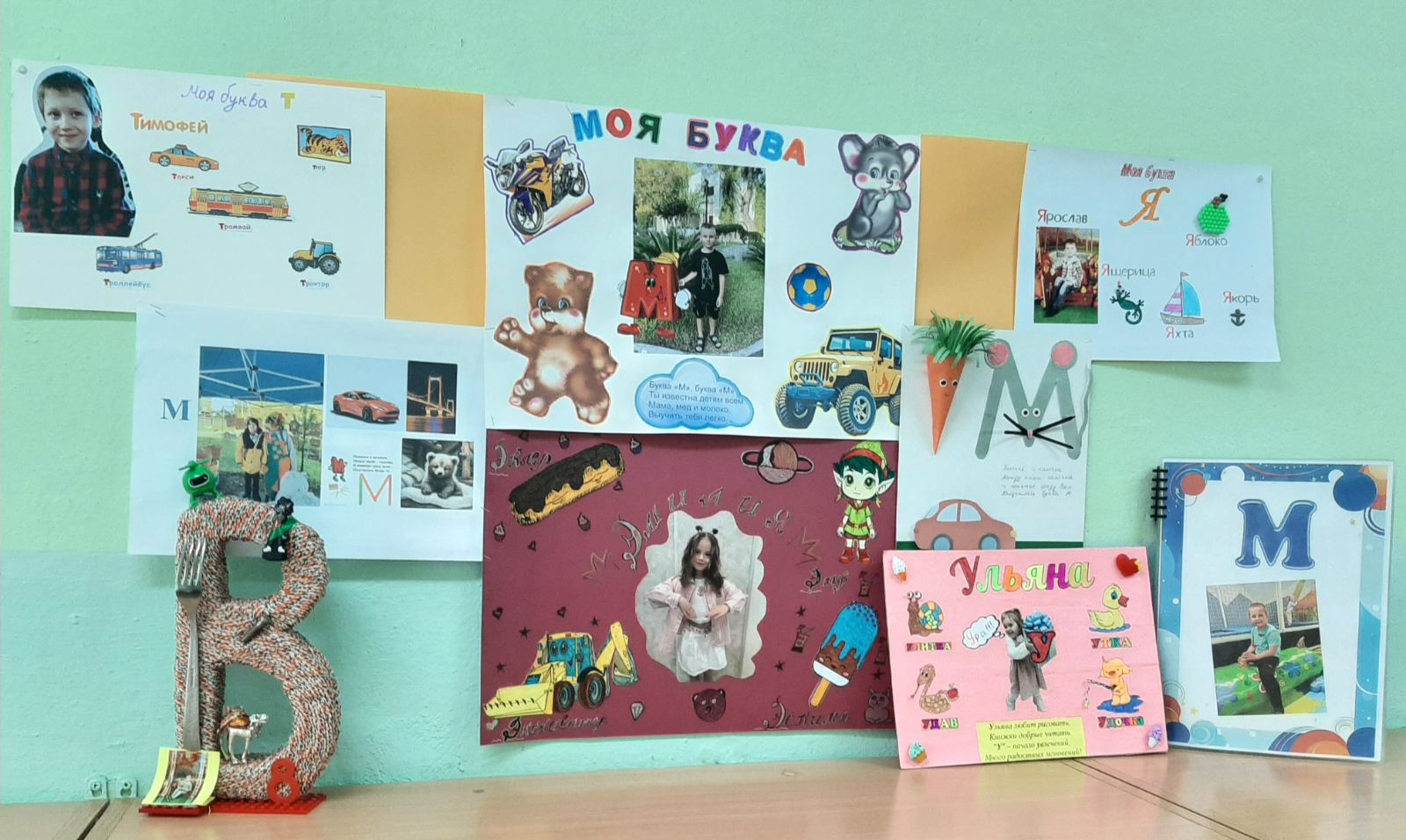 Максим Стукач вместе с мамой рассказал о своей букве, создав книгу. На страницах книги : пазлы, прописи, карточки-презентации, кроссворды. Миша, Матвей, Мира, Мирослав подготовили красочные плакаты с фотографиями и движущимися фигурами. Постарались все!!!