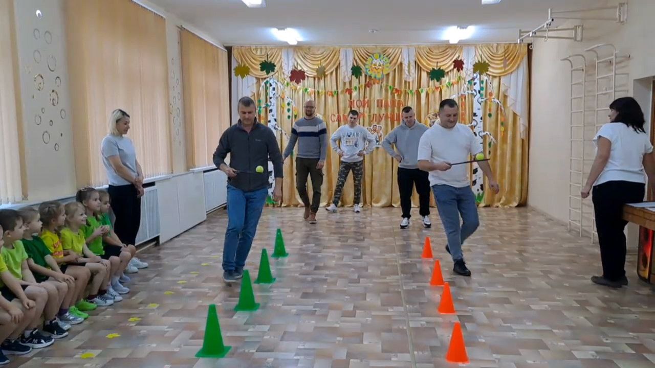 На физкультурном празднике "Мой папа - самый лучший" ребята старшей группы поздравляли своих любимых пап с праздником - с Днем отца.