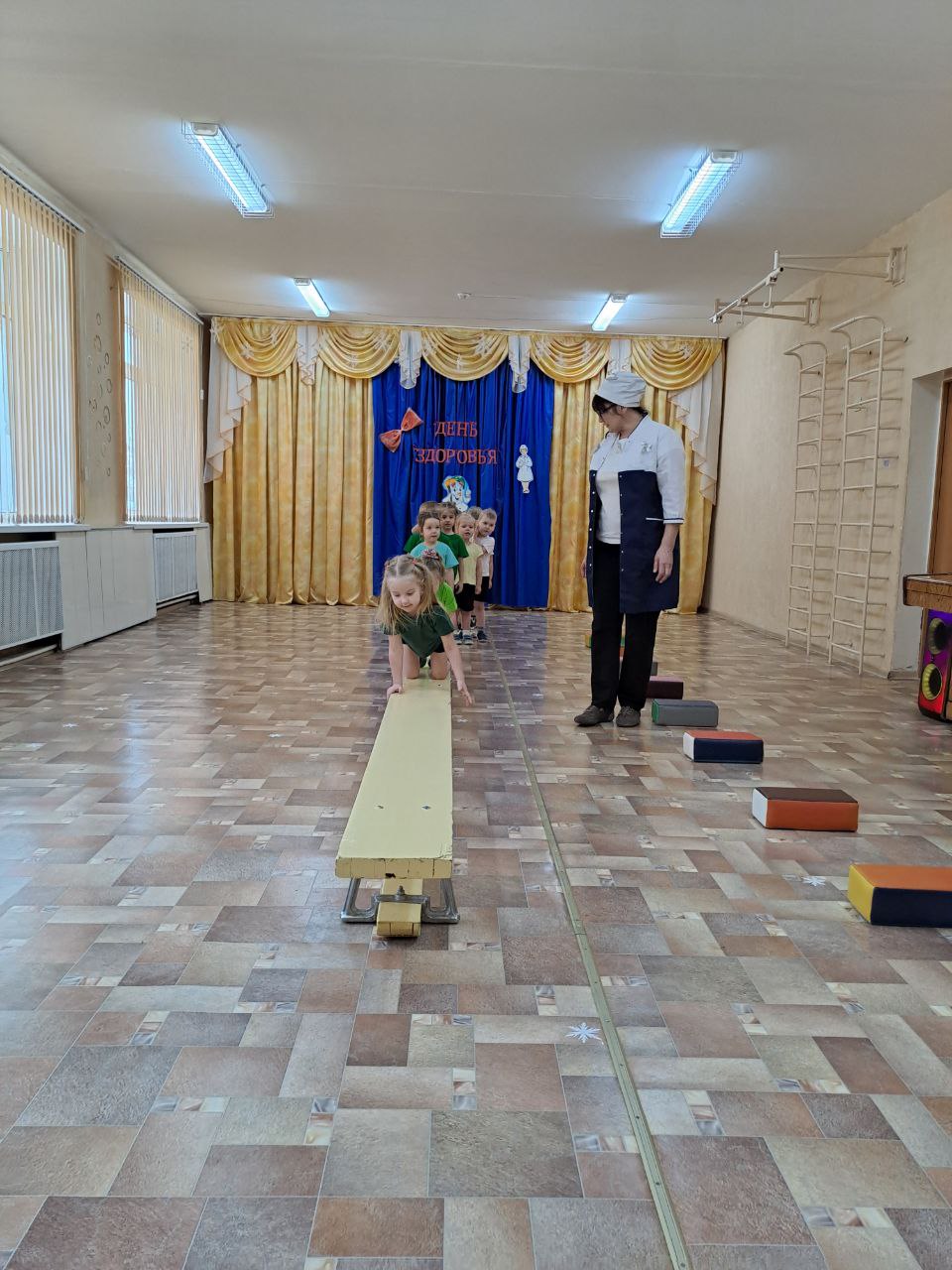 Ведь у неё в "физкультурно- медицинском кабинете" совсем всё по-другому, не так, как на приёме у врача в поликлинике. Вместо уколов и таблеток доктор Бантикова " прописала" ребятам физические упражнения и различные виды движений с разнообразным спортивным оборудованием и инвентарём. Такое "лечение" не только укрепила мышцы, но и помогло в развитии ловкости, быстроты, координации движений.