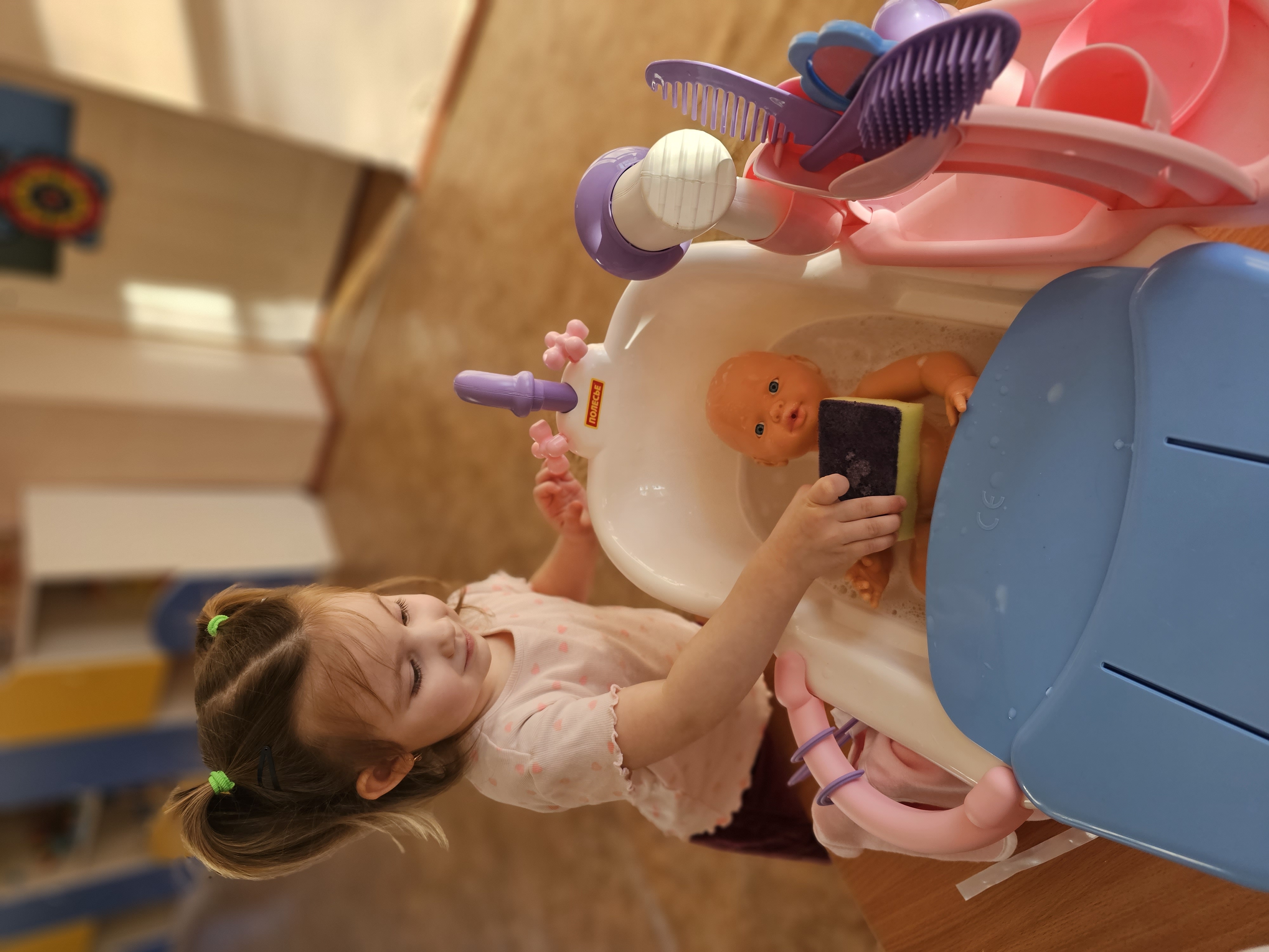 В ходе игры дети учились мыть руки, умываться, купать кукол, запоминали части тела и одежду, а также развивали эмоциональную сферу.