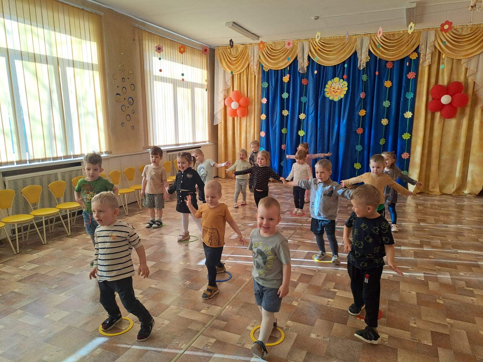 А сегодня в процессе физкультурно - оздоровительной деятельности малыши 1 младшей Б группы не только двигались и играли в подвижные игры, но и закрепляли цвета с помощью разноцветных колечек и шариков! Было не только весело, но и познавательно!
