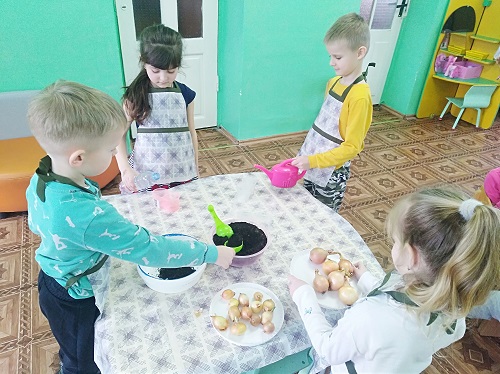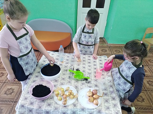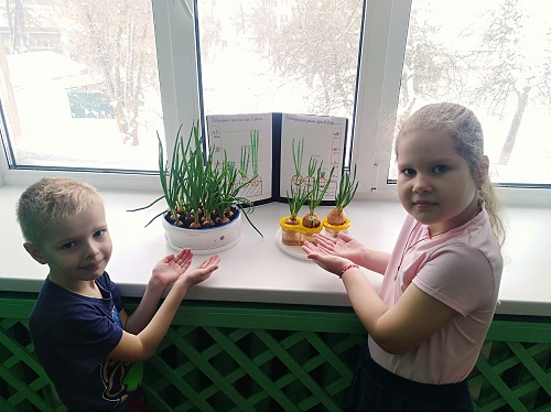 Ребята наблюдали за ростом лука в разных условиях, и фиксировали в дневнике наблюдений происходившие изменения. В процессе ребята научились сажать лук и ухаживать за ним, познакомились с условиями его выращивания, получили знания о росте зеленого лука в комнатных условиях как в контейнере с землей, так и в контейнере с водой. Через две недели проанализировали результат и сделали вывод: лук в земле растет лучше, чем в воде.