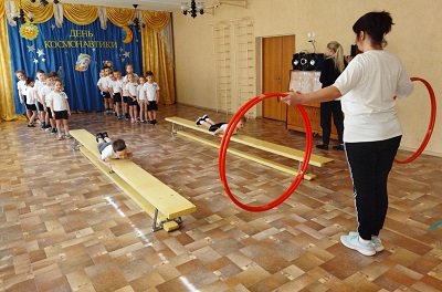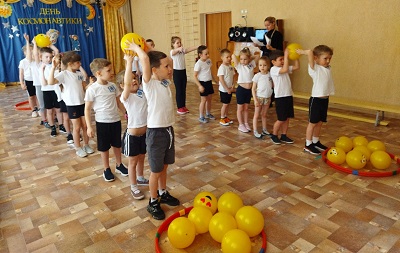Воспитанники старшей группы отправились в космос, где их ждали космические приключения. Для комфортного полета были сформированы две команды: команда "Ракета" и команда "Планета" и назначены командиры. Перед полётом ребята выполнили весёлую разминку. В подвижной игре "Ждут нас быстрые ракеты" ребята показали свою ловкость и быстроту. Выйдя в "открытый космос", увидели красивое зрелище - "парад планет" и вспомнили их названия. Очень сложным было задание "стыковка космических аппаратов", где от ребят потребовалось внимание и умение слаженно двигаться в парах. "Прогулка на Луну" потребовала проявить настойчивость, быстроту и выполнить упражнение на равновесие. Каждый из участников прошел по своему "млечному пути", на котором ребятам пришлось не только подумать, как быстрее его пройти, но и показать ловкость и сноровку.