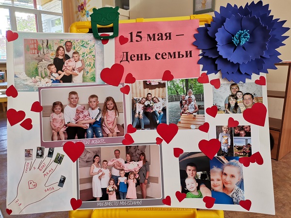 Сегодня наши ребята принесли в детский сад семейные фотографии и рассказали о своих семьях. Семьи у наших ребят разные - маленькие и большие, дружные, веселые, самые лучшие, красивые - вот так описывали ребята свои семьи))). А ребята средней группы выполнили коллективную аппликацию, посвященную Дню семьи.