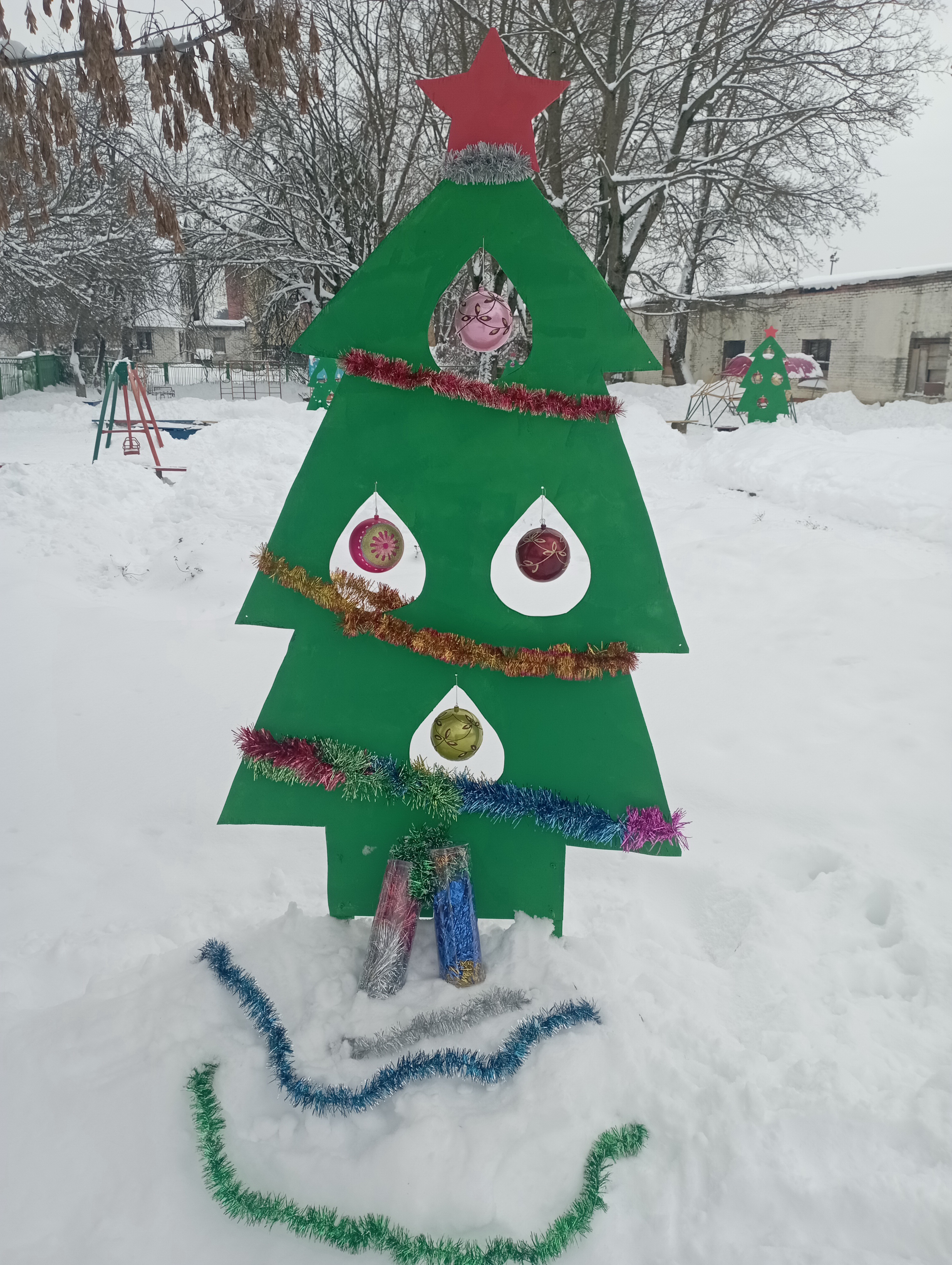 Новый Год – это один из самых долгожданных праздников для детей. Это волшебная сказка полная чудес и волшебства. Вот для того, чтобы наши дети как можно дольше пребывали в мире сказки, волшебства и хорошего предновогоднего настроения, в нашей группе была создана праздничная атмосфера – это красивая елочка, смешные снеговики, на участке детского сада красуется елочка.