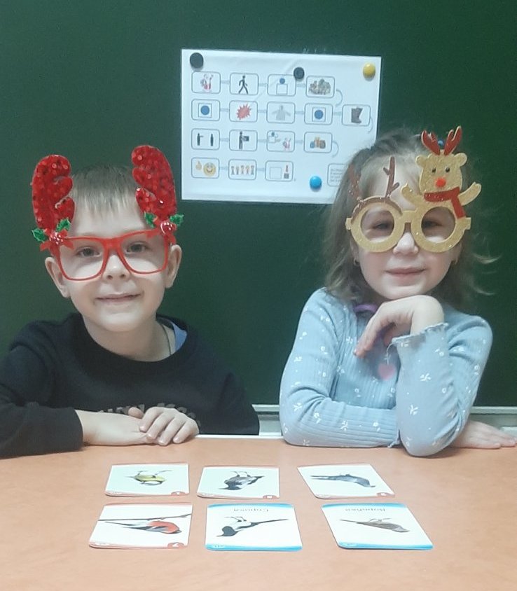 На коррекционных занятиях мы наряжаем ёлку необычными шарами. На наших ёлочных игрушках картинки с артикуляционными упражнениями и трудным звуками. Ребята выполняют следующие упражнения - "Найди игрушку по адресу", "Отгадай по описанию", "Что изменилось", "Чего не стало". Для чего нам новогодние очки? Они же волшебные! В одни очки мы видим много предметов, а смотря через другие предметы исчезают. Яркие колпачки, узорные снежинки, забавные очки мотивируют наших ребят к усвоения грамматических конструкций и дарят положительные эмоции.