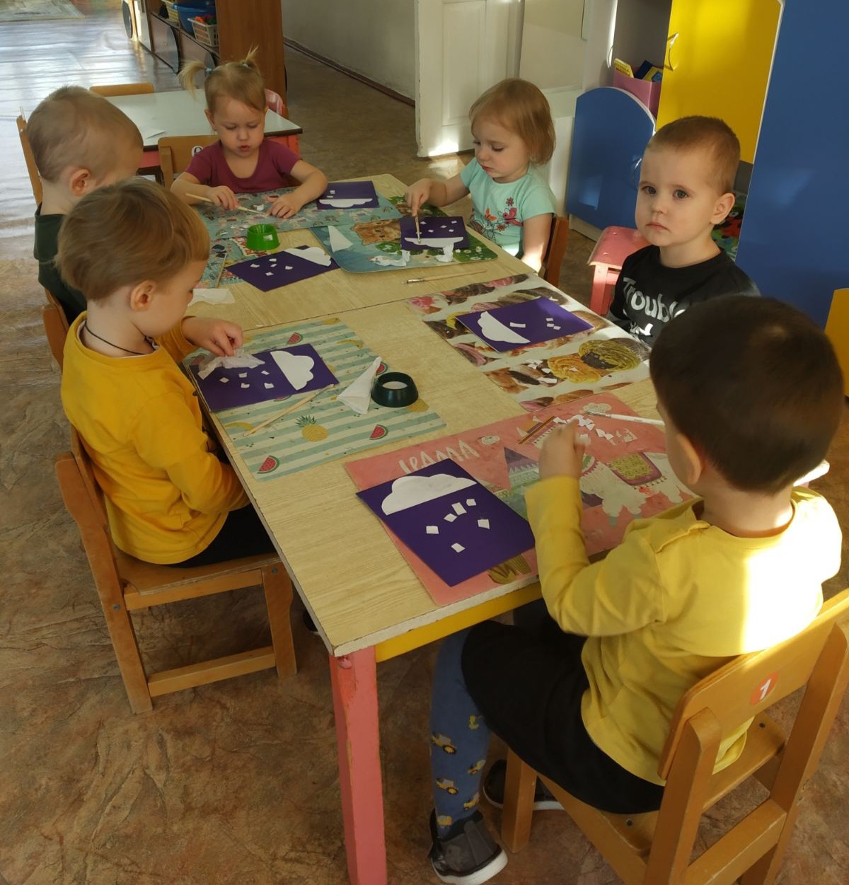 Сегодня в первой младшей группе были созданы все условия для знакомства детей с новым видом аппликации обрыванием.