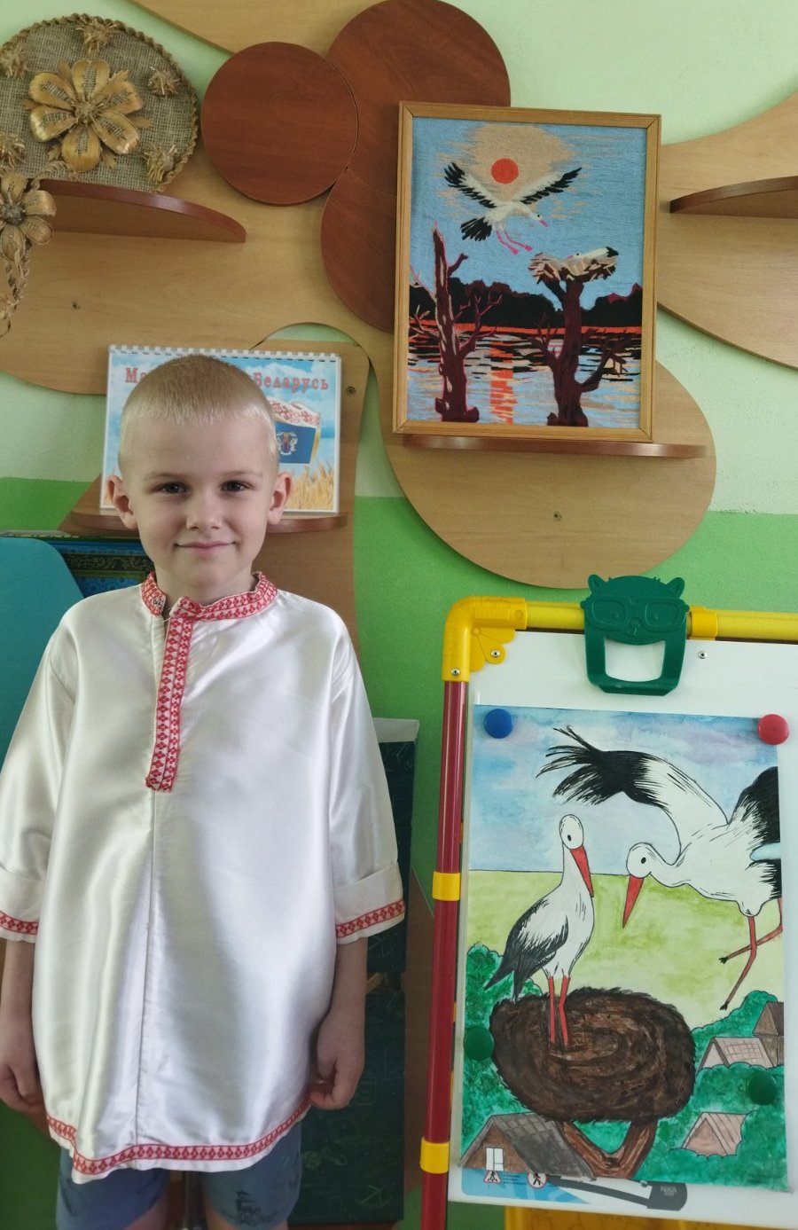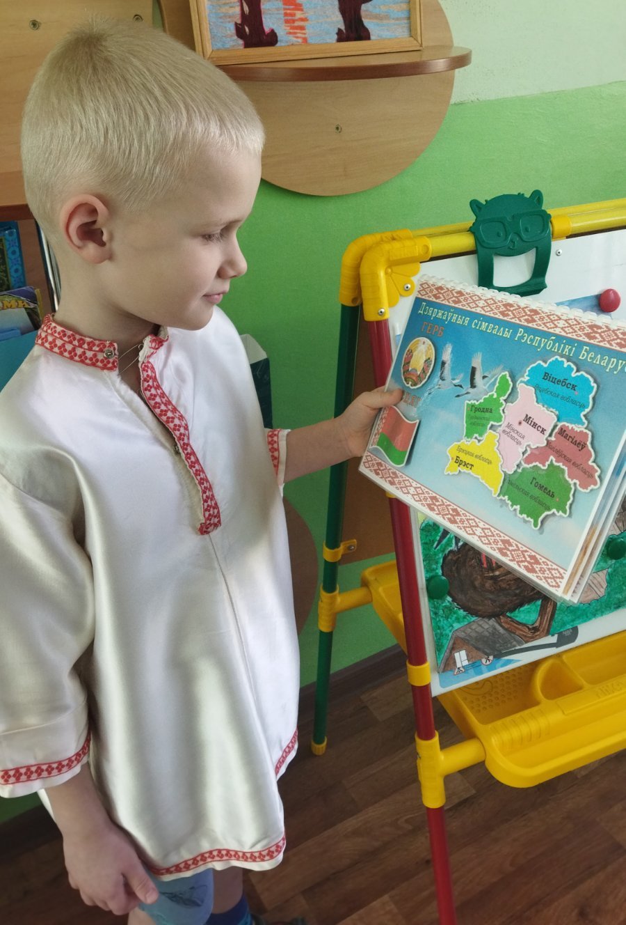 Чацвер у нашым садочку беларуска-моўны дзень. З мэтай фарміравання ўяўлення аб нашай краіне, родным горадзе, выхавання гонару да сваёй Радзімы на занятку выхаванцы старэйшай "Б" групы развучылі верш "Блакіт нябёс".