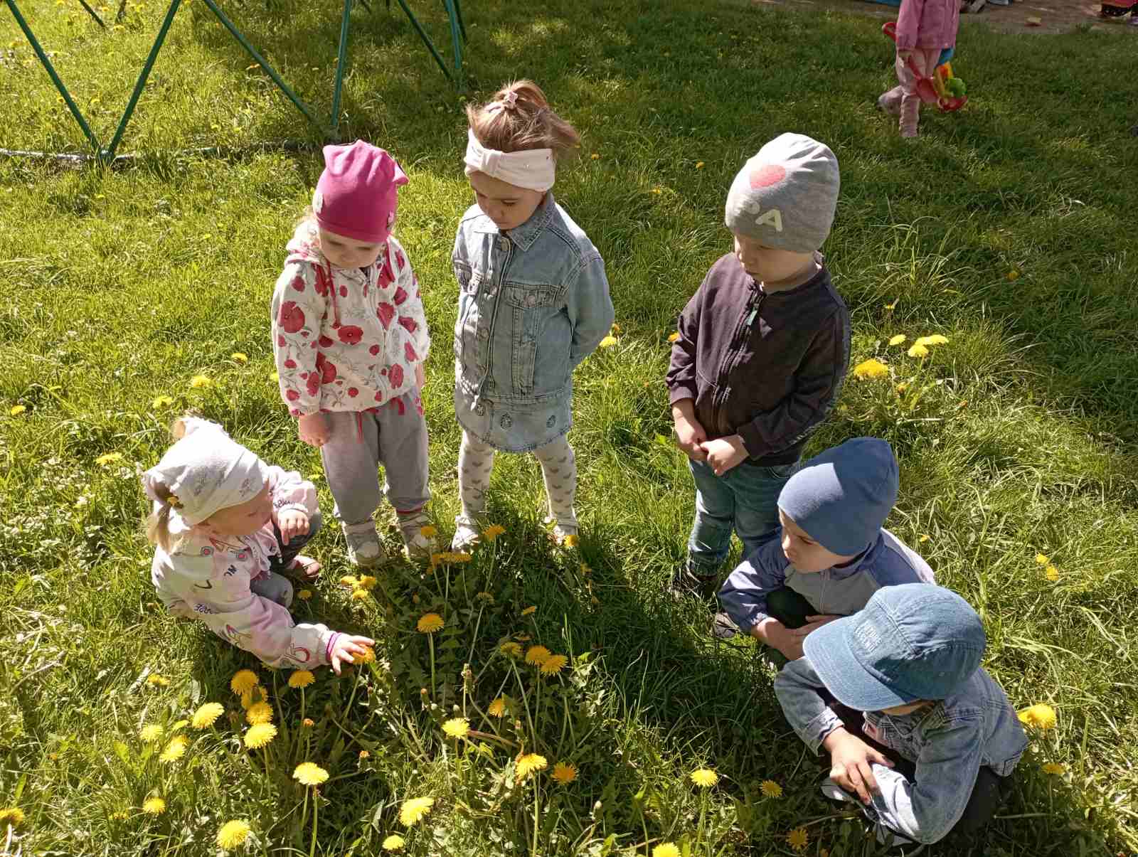 На прогулке в ходе наблюдения за окружающей природой дети познакомились с цветущим растением - одуванчиком. В процессе наблюдения дети отгадывали, на что похож одуванчик, рассматривали части растения (стебель, листья, цветок), называли внешние признаки растения (одуванчик желтый).