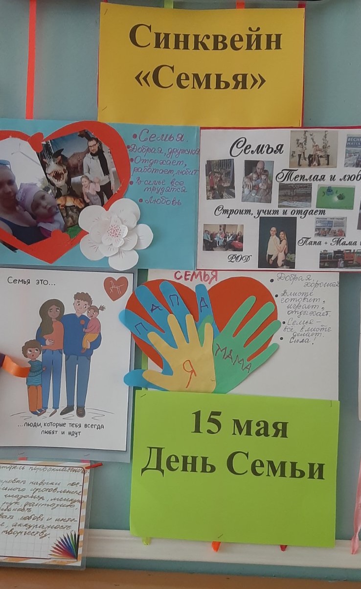 К дню семьи ребята старших групп совместно с родителями подготовили синквейны. В пяти строках стихов они рассказали о своих семьях. Добрые, дружные, теплые, любящие, весёлые, спортивные, настоящие - так описали ребята свои семьи. Фотографии и рисунки сделали творческие работы яркими и красочными.