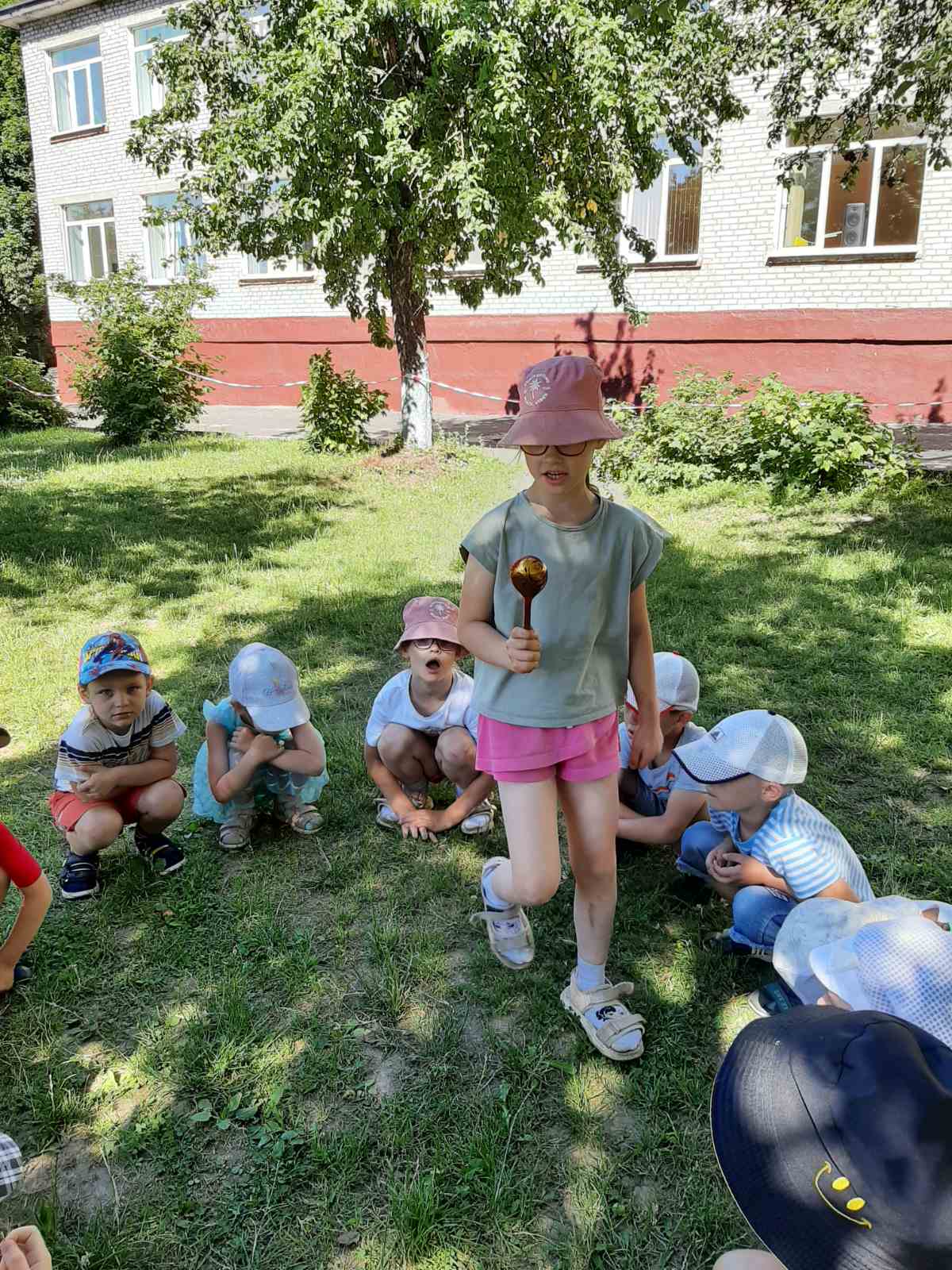 Во время прогулки ребята вспомнили такие игры как: "Гарлачык", "Усім, козачка, раскажы", "Слуцкія паясы". А в конце исполнили на детских музыкальных инструментах белорусскую народную песню "Саўка ды Грышка".
