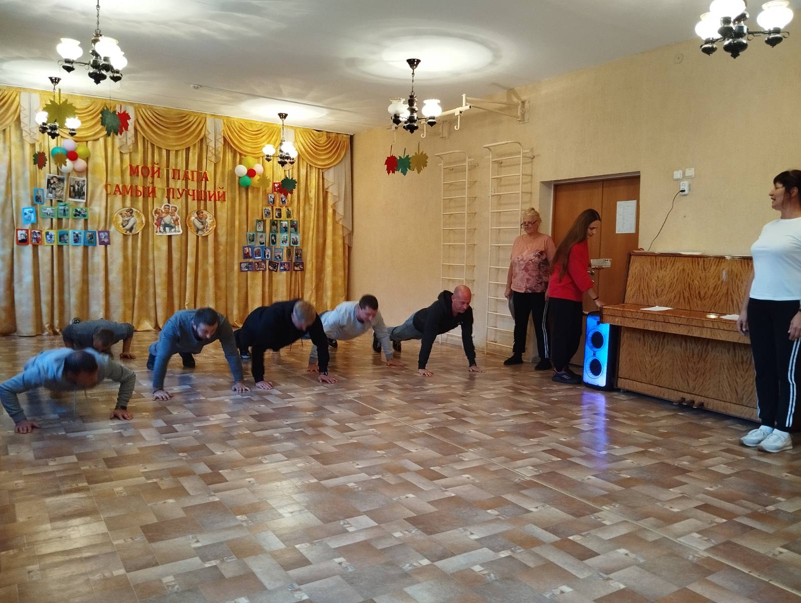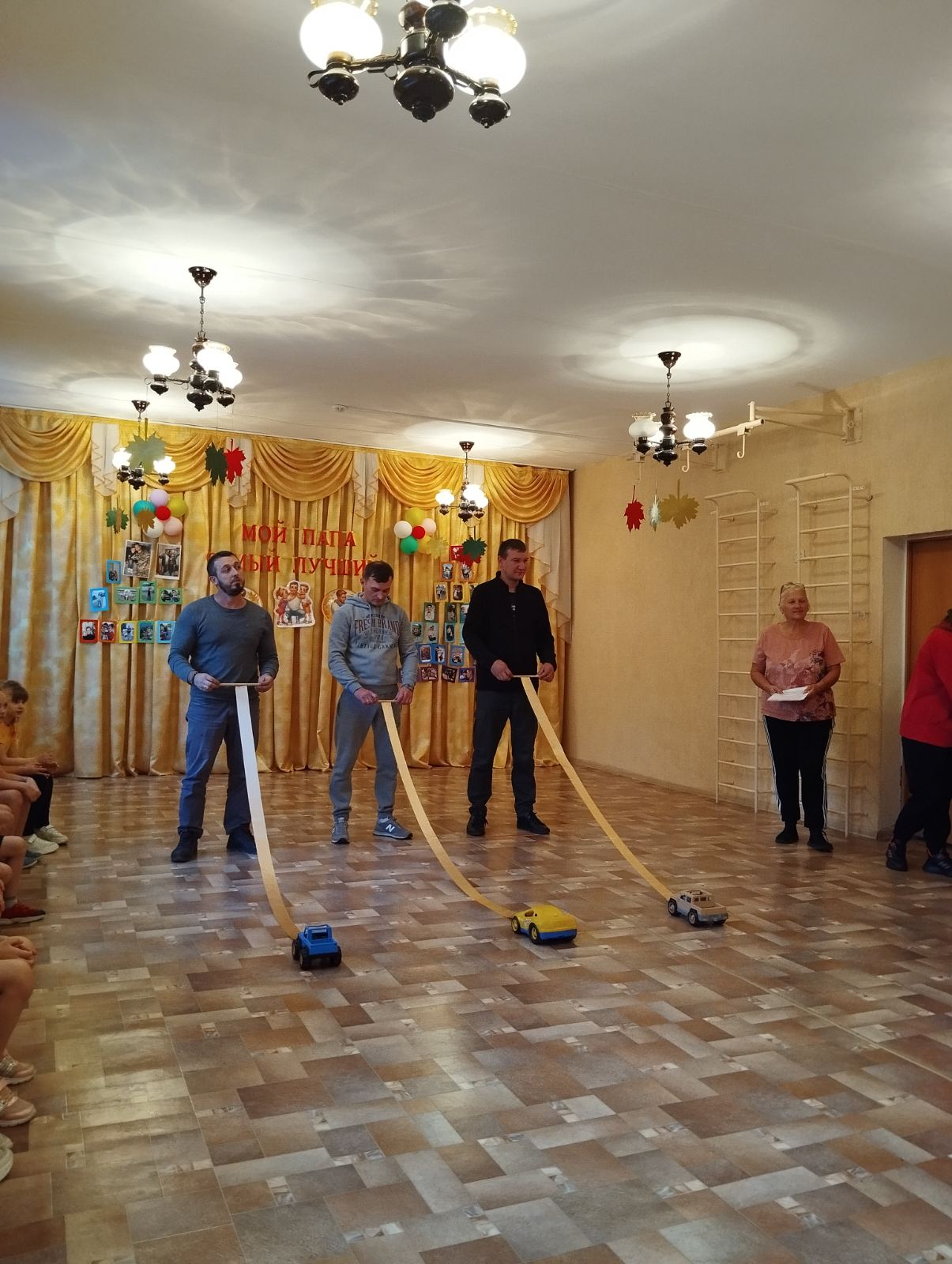 На физкультурном празднике "Мой папа лучше всех" ребята старшей А группы поздравляли своих пап стихами. Папы прошли настоящую проверку на выполнение обязанностей в отсутствие мамы. Выполнили утреннюю зарядку, показав мастер-класс по отжиманию, заплетали косички своим доченькам, участвовали в конкурсе "Автогонщики", показали свою богатырскую силу в эстафете "Лягушата- путешественники". А сколько радости и эмоций ребятам доставила инсценировка сказки"Колобок" в исполнении родителей! Праздник завершился общим танцем "Неразлучные друзья" и награждением пап медалями, ведь они достойны звания "Лучший папа".