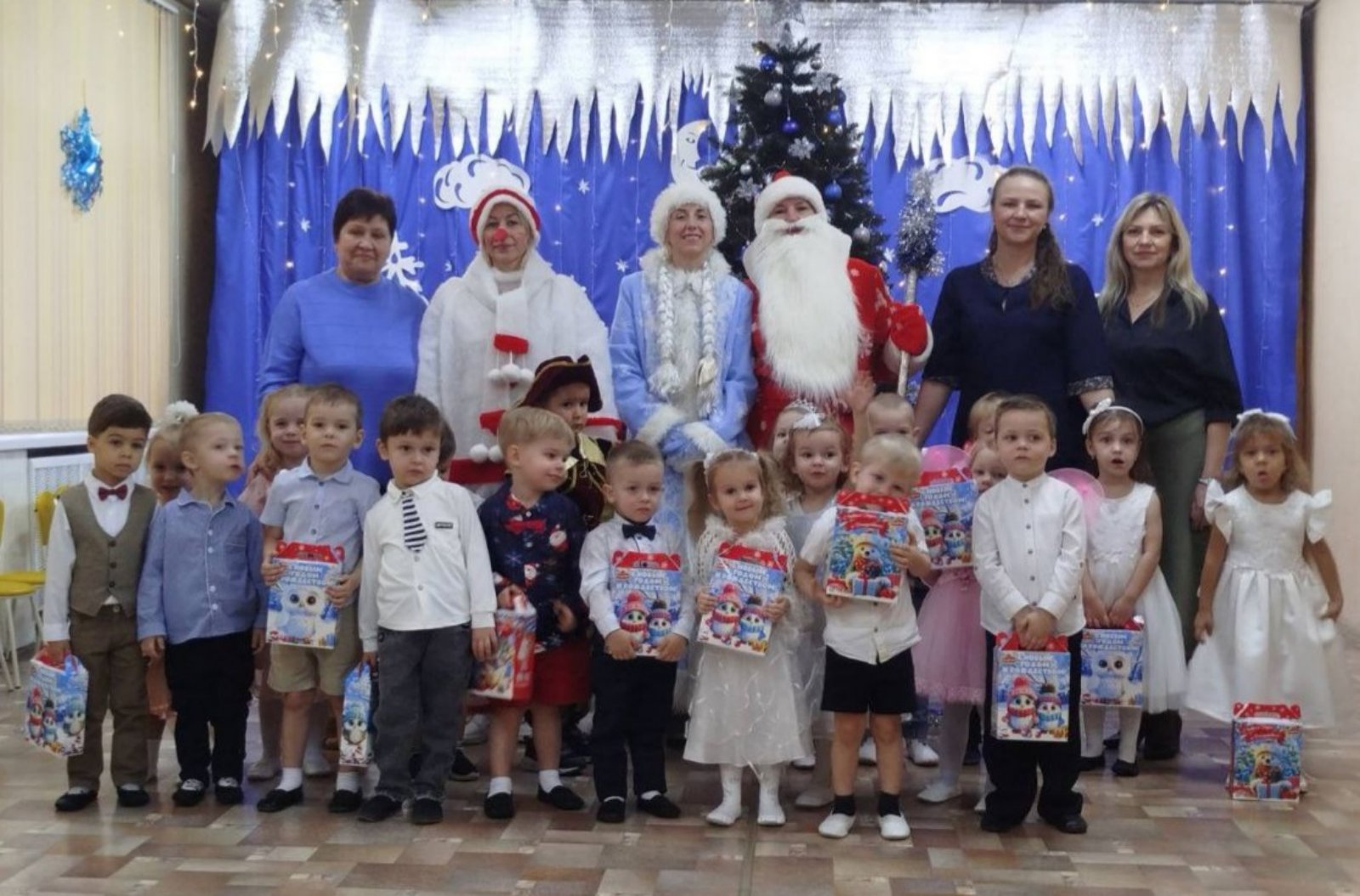 В преддверии праздника в нашем детском саду прошли новогодние праздники для всех возрастных групп. Празднично украшенный зал встретил детей весёлой новогодней музыкой и яркими огнями. Все ребята были нарядными и радостными, превратившись в разных сказочных персонажей. Все веселились у нарядной ёлочки с красавицей Снегурочкой, хитрой Лисой, задорным Снеговиком и весёлой Бабой Ягой. Ребята водили с ними хороводы, играли в снежки, танцевали с султанчиками. Деда Мороза дети встретили с улыбкой и радостью в глазах. Для него ребята спели песню, вместе с ним играли в любимые игры. Добрый волшебник помог зажечь огоньки на новогодней ёлке, а на прощание вручил каждому ребёнку новогодний подарок.