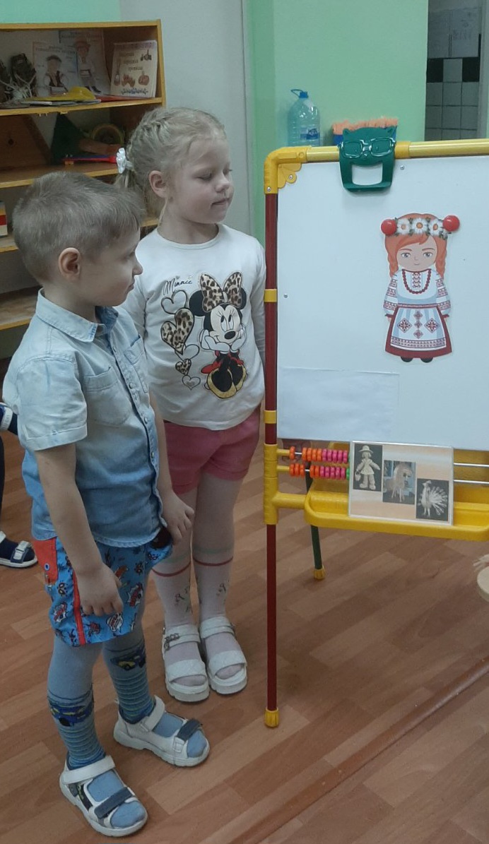 З мэтай далучэння да традыцый і гісторыі свайго народа, дзеці сярэдняй групы пазнаёміліся з беларускай цацкай і беларускім нацыянальным адзеннем, а таксама даведаліся з якога матэрыялу іх вырабляюць. З вялікай цікавасцю і жаданнем дзеці ўпрыгожвалі фартух беларускім арнаментам, чаргуючы элементы ўзору па памеры. Дэкаратыўна-прыкладное мастацтва выклікала вялікую цікавасць у дзяцей.
