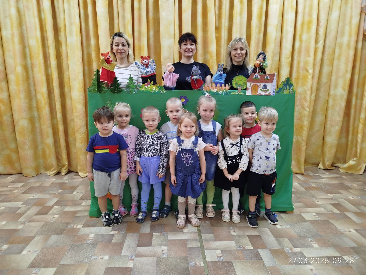 Сегодня, Всемирный день театра, для воспитанников 2 младшей и средней групп был показан кукольный спектакль "Колобок на новый лад". Ребята не только внимательно смотрели знакомую сказку с новым сюжетом, они были активными участниками действий, происходящих на ширме. С помощью пальчиковых игр дети помогли Бабушке наколоть дров, замесить тесто и испечь Колобок. Весело поиграли с Зайчиком и Медведем. Научили танцевать Волка. А хитрую Лису прогнали, чтобы она не съела Колобка. В конце ребята дружно станцевали в хороводе.