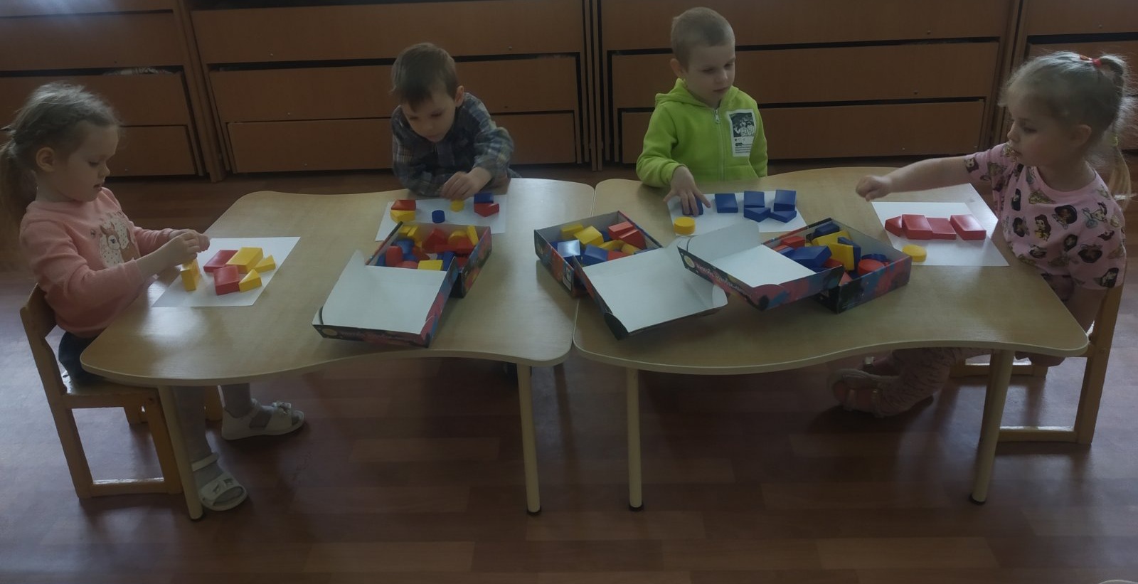 Сегодня ребята второй младшей группы строили домики из логических блоков Дьенеша.