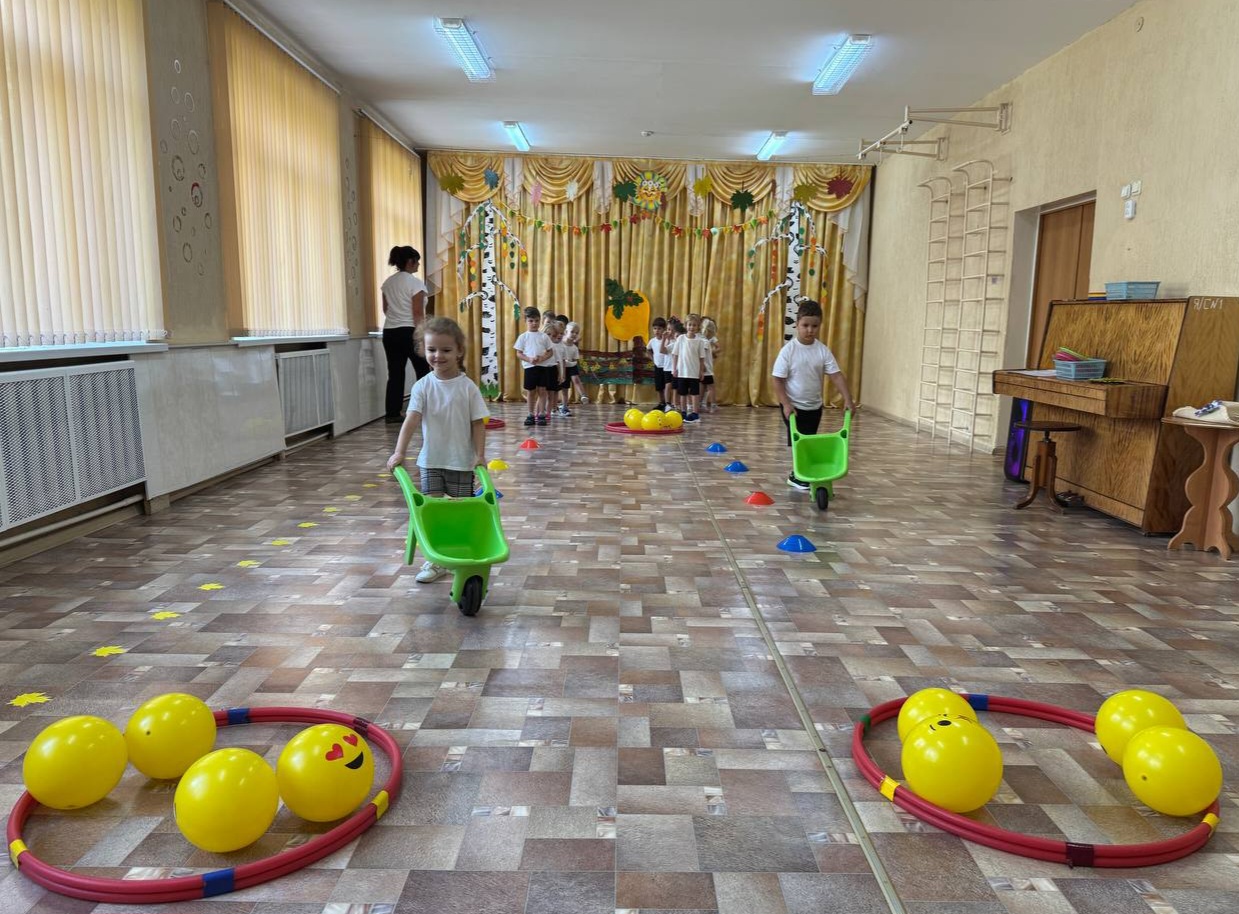 На огороде вырос богатый урожай вкусной и сочной репки. Ребята не только помогли перевезти урожай, но и поиграли с огородным пугалом в подвижную игру.