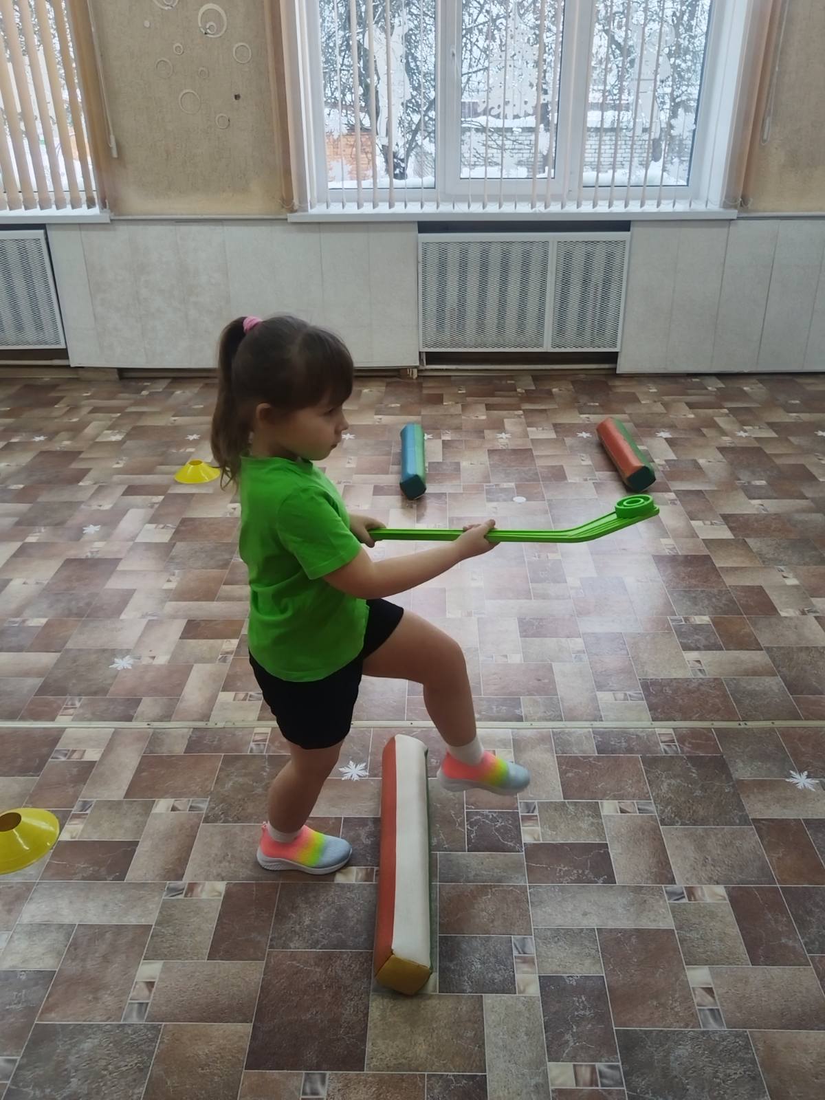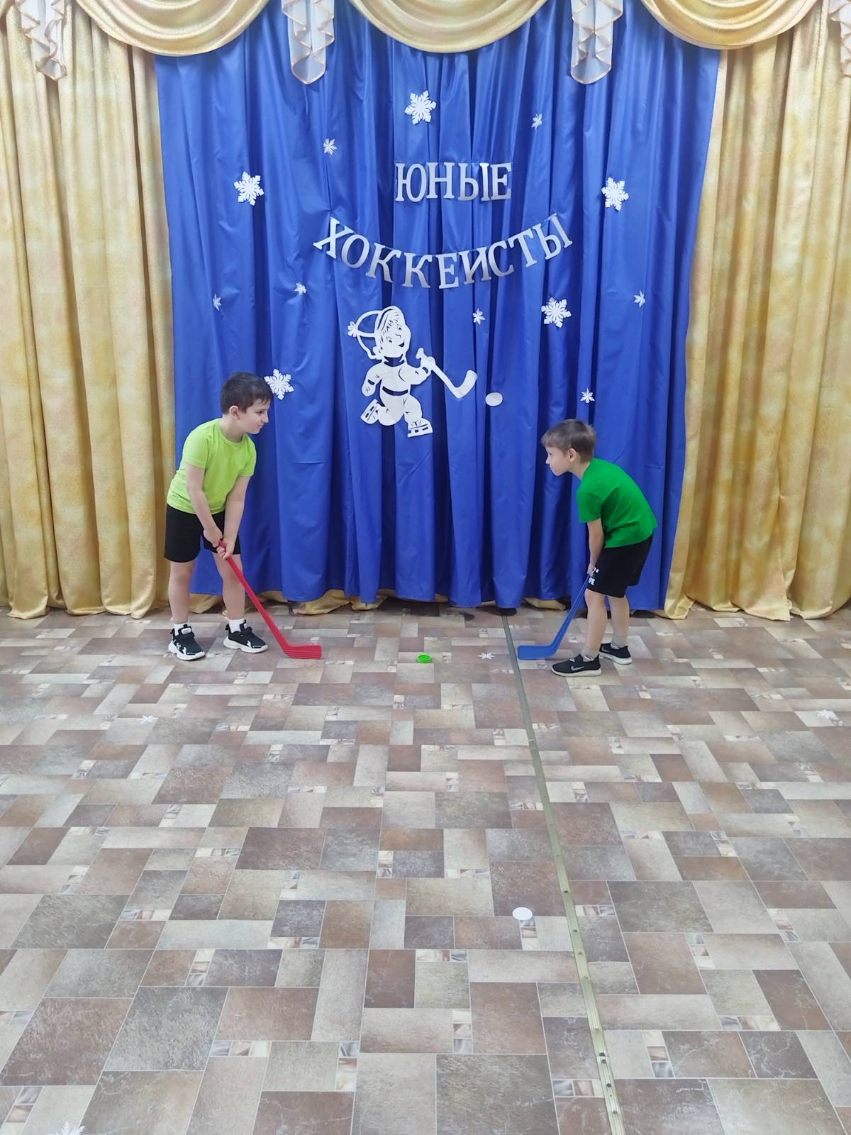 На физкультурном досуге "Юные хоккеисты" ребята старшей группы, выполнив весёлую зимнюю разминку, отрабатывали элементы спортивной игры хоккей: ведение шайбы (мяча) клюшкой по прямой, между ориентирами, броски шайбы с места в цель, выполняли упражнения на развитие равновесия и координации движений.