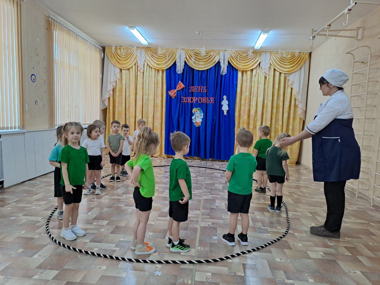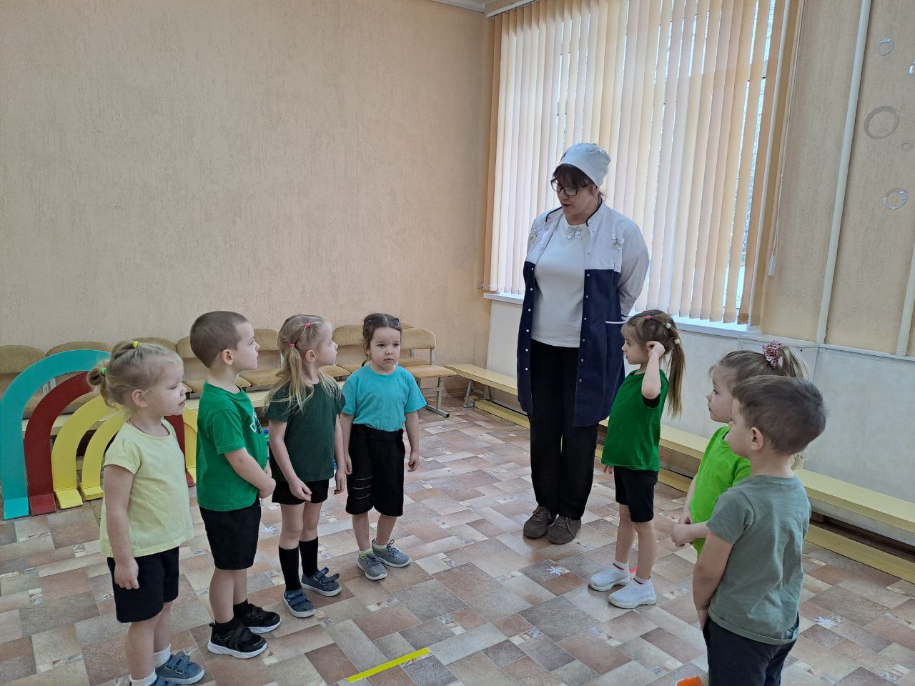 Ведь у неё в "физкультурно- медицинском кабинете" совсем всё по-другому, не так, как на приёме у врача в поликлинике. Вместо уколов и таблеток доктор Бантикова " прописала" ребятам физические упражнения и различные виды движений с разнообразным спортивным оборудованием и инвентарём. Такое "лечение" не только укрепила мышцы, но и помогло в развитии ловкости, быстроты, координации движений.