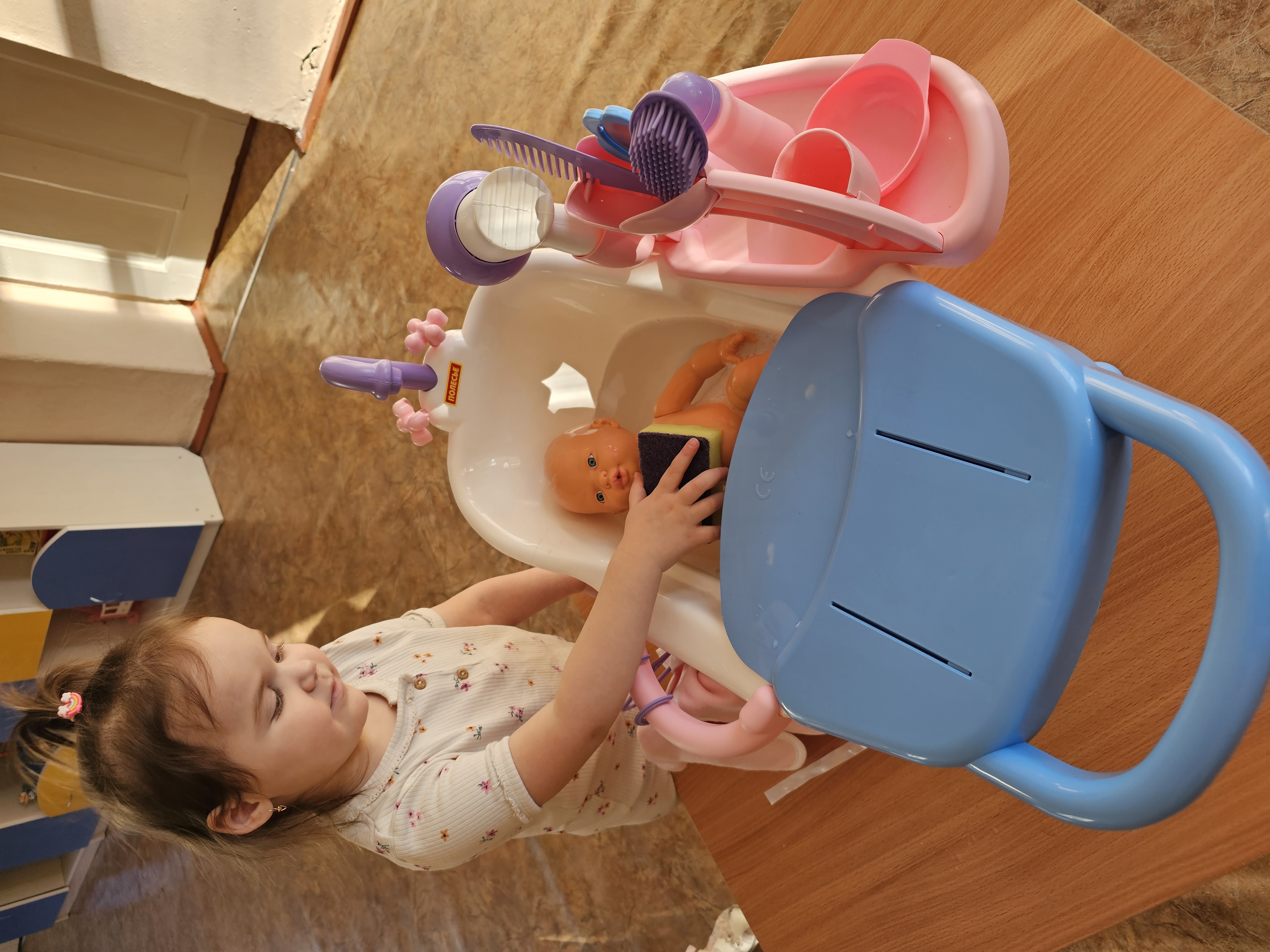 В ходе игры дети учились мыть руки, умываться, купать кукол, запоминали части тела и одежду, а также развивали эмоциональную сферу.