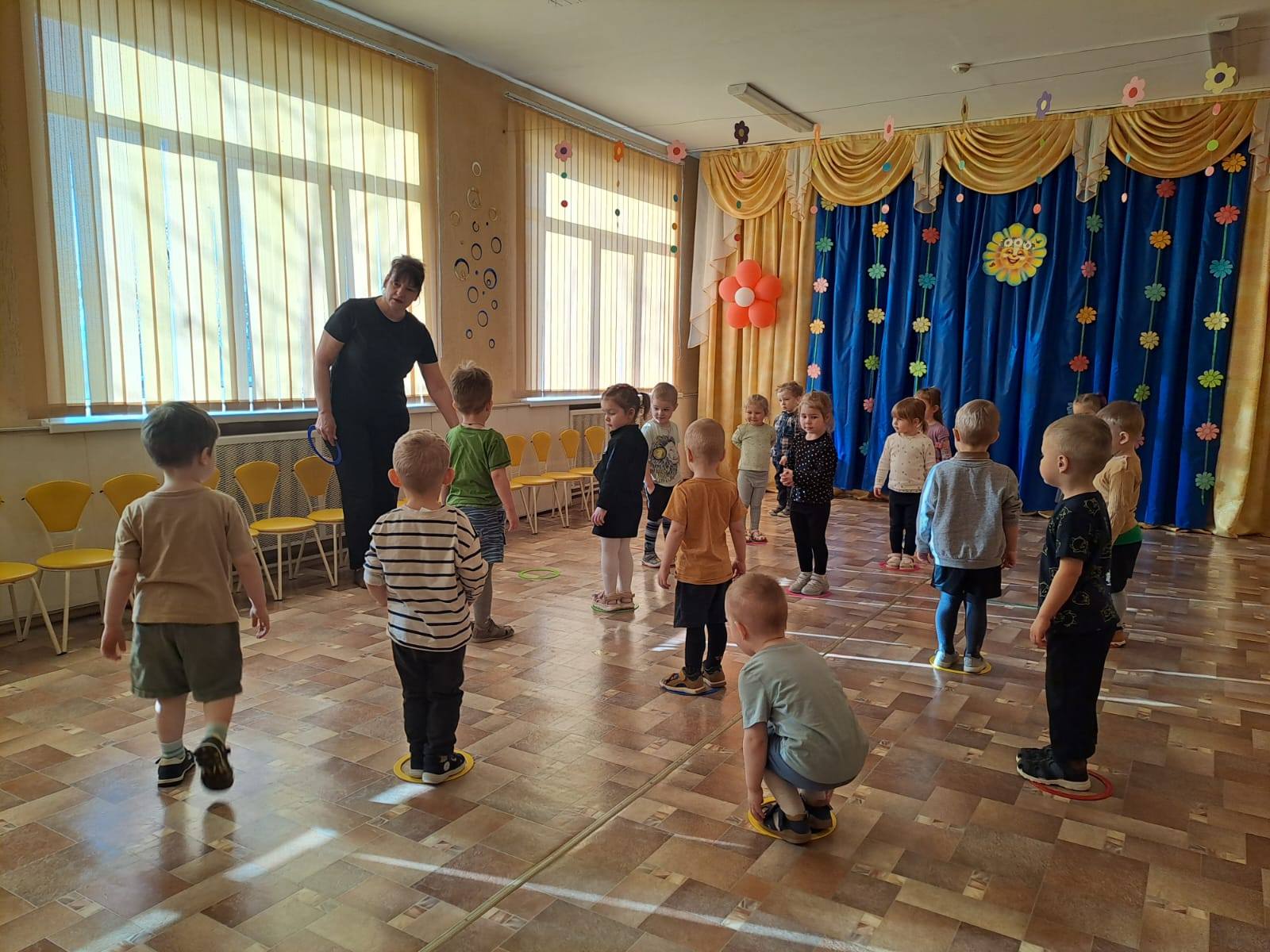 А сегодня в процессе физкультурно - оздоровительной деятельности малыши 1 младшей Б группы не только двигались и играли в подвижные игры, но и закрепляли цвета с помощью разноцветных колечек и шариков! Было не только весело, но и познавательно!
